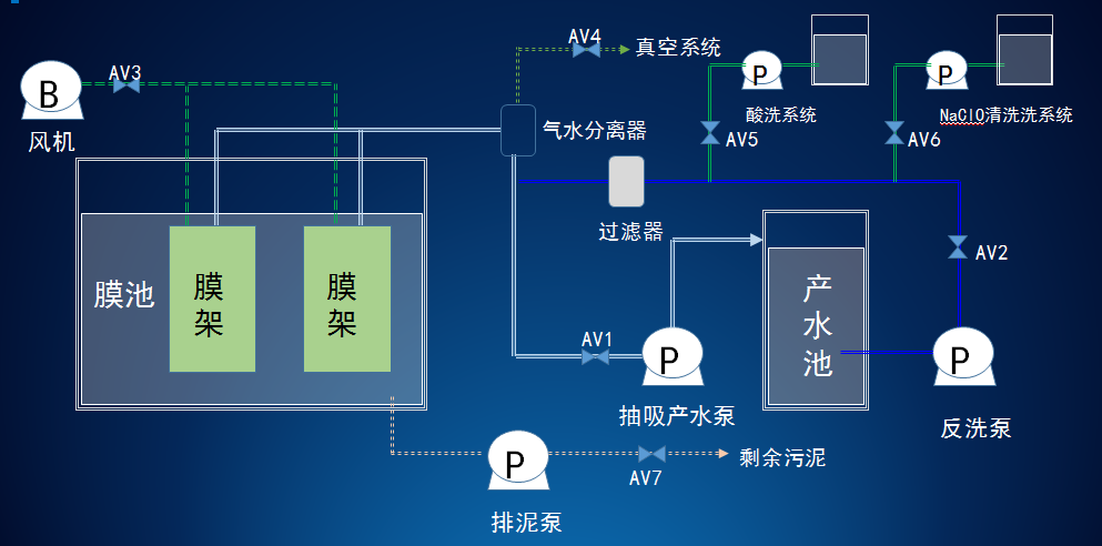 浸沒(méi)式膜過(guò)濾系統(tǒng)采用開(kāi)放式外壓超濾膜組件,將其完全浸沒(méi)于膜池之中,通過(guò)抽吸泵負(fù)壓抽吸產(chǎn)水,以膜組件取代傳統(tǒng)混凝、沉淀、過(guò)濾等工藝過(guò)程,廣泛應(yīng)用于自來(lái)水凈化、中水回用以及海水淡化等領(lǐng)域。